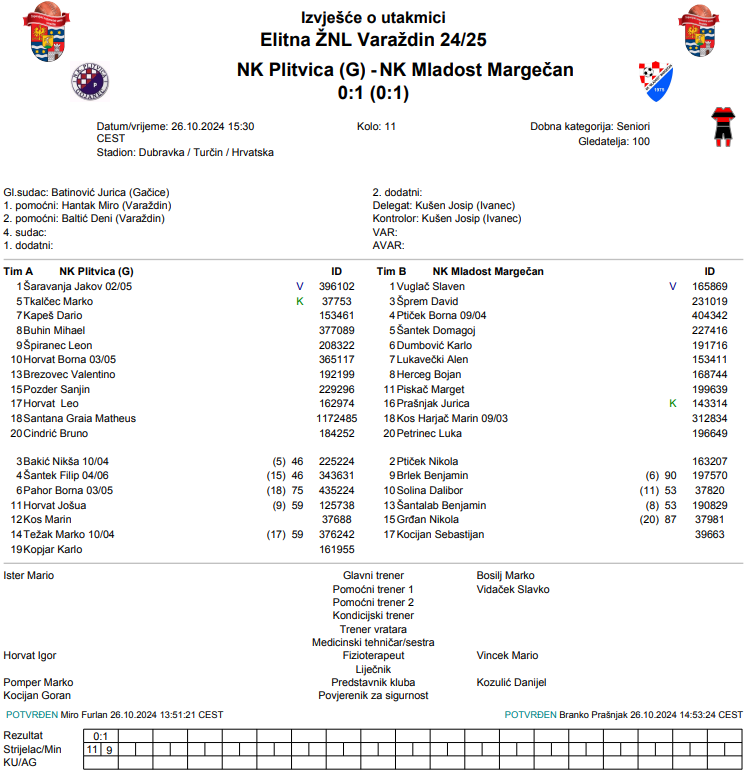 NK Plitvica (G) – NK Mladost Margečan 0:1