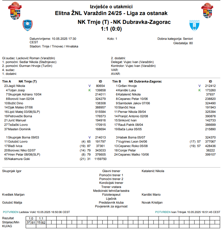 NK Trnje (T) – NK Dubravka-Zagorac 1:1