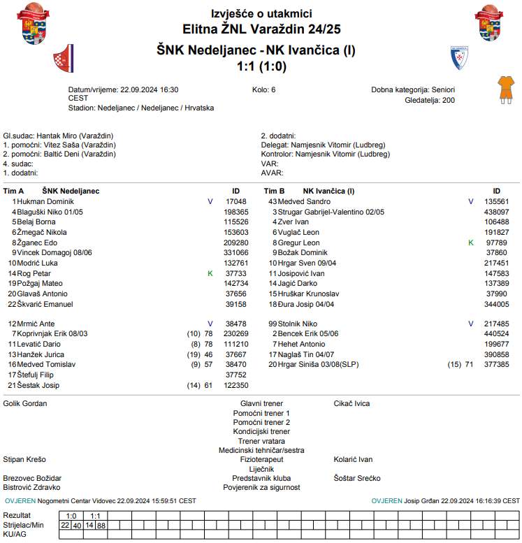 U Nedeljancu su dvije odlične momčadi podijelile bodove. Nedeljanec je ugostio Ivančicu na svom stadionu. Emanuel Škvarić je pred kraj prvoga dijela zabio za prednost domaće momčadi. Nisu se predavali gosti i čekali su svoje prilike. To ih je na kraju nagradilo jer je Darko Jagić pogotkom u 88. minuti donio bod svojoj Ivančici. Nedeljanecu je ovo prvi remi u sezoni, dok je Ivančica upisala drugi zaredom.