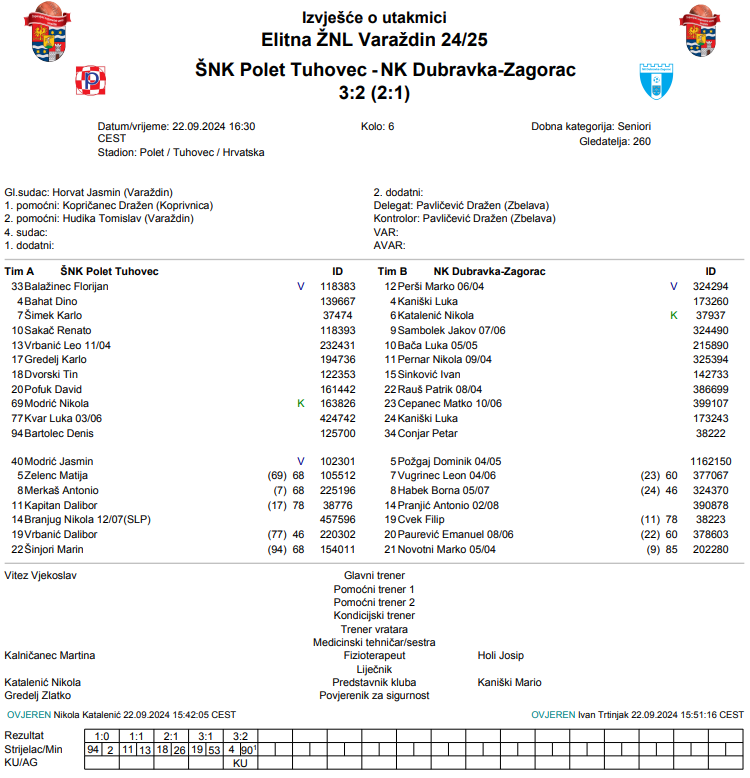 Polet se nakon prošlotjednog remija vratio na pobjedničke staze. Ovoga puta su na svom stadionu svladali fenjeraše iz Turčina, ali dosta teže nego što su se nadali. Denis Bartolec u sjajnoj je formi jer na šest utakmica ima isto toliko pogodaka. Jedinu utakmicu gdje nije poentirao odigrao je protiv Bednje, a u svim ostalim je pronalazio put do pogotka. Tako je bilo i danas. Denis je načeo protivnika ranim pogotkom u 2. minuti utakmice. Nikola Pernar je samo deset minuta kasnije vratio utakmicu na početak i izjednačio na 1:1. Tin Dvorski pobrinuo se da Polet ode na predah s prednošću i zabio za 2:1 u 26. minutu. U drugom dijelu domaći su ponovno poentirali preko Dalibora Vrbanića i otišli na sigurno odstojanje od protivnika s dva pogotka prednosti. Ipak, tu pogocima nije bio kraj jer je Luka Kaniški zabio pogodak u 91. minuti utakmice za umanjenje poraza od 3:2.