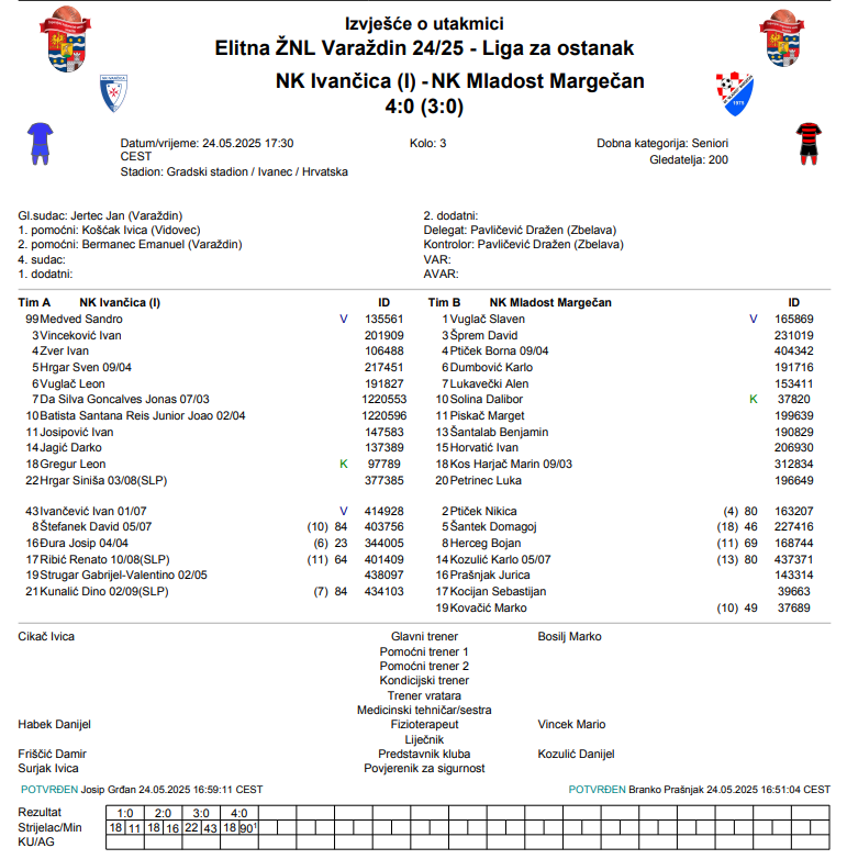 Prvu pobjedu u ligi za ostanak upisala je momčad iz Ivanca. Na domaćem terenu uz utakmicu punu tenzija domaćin je bio sretnija i spretnija momčad. Hattrick kapetana Gregura uz pogodak Hrgara osigurali su Ivančici visoku pobjedu i tri boda.