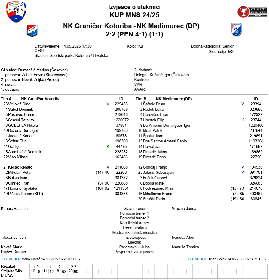 NK Graničar Kotoriba – NK Međimurec (DP) 2:2 (4:1 – 11m)