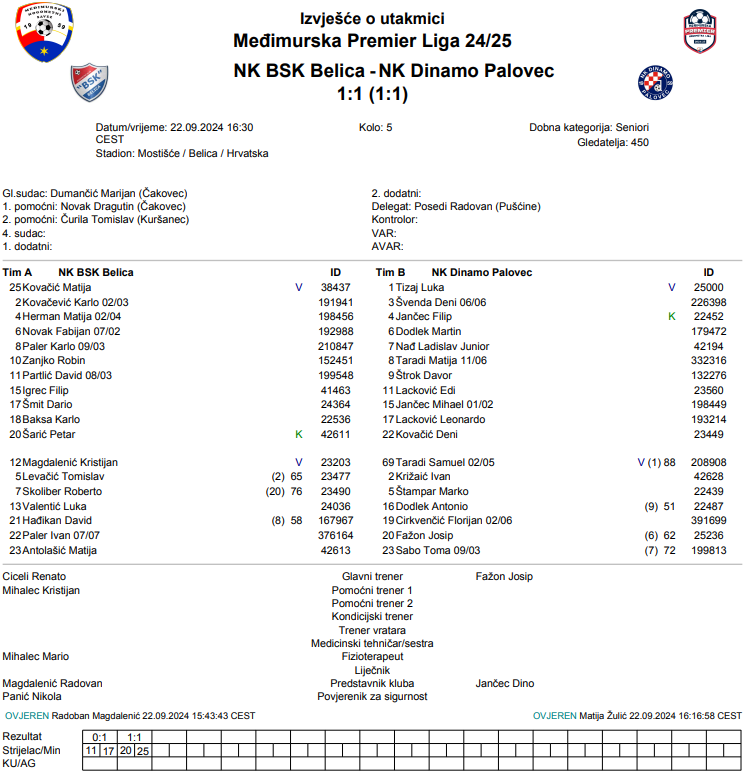 NK BSK Belica – NK Dinamo Palovec 1:1