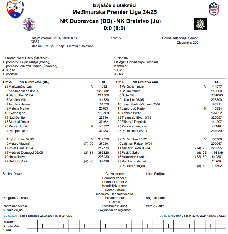 Remi je viđen i na Krbulji u Donjoj Dubravi. Tamo je Dubravčan ugostio Bratstvo i s njime podijelio bodove. Rezultat nije odraz događanja na terenu jer je prilika ovdje itekako bilo. Poništeni pogoci, obranjen jedanaesterac i druge propuštene prilike samo su ukratko sadržaj ove utakmice. Na sve to, semafor je na kraju nepravedno ostao nepromijenjen od starta jer pogodaka nije bilo. Zadovoljne bodom mogu biti obje momčadi, ali će domaći na kraju više žaliti zbog propuštenog jedanaesterca koji je Emanuel Perčić sjajno obranio.