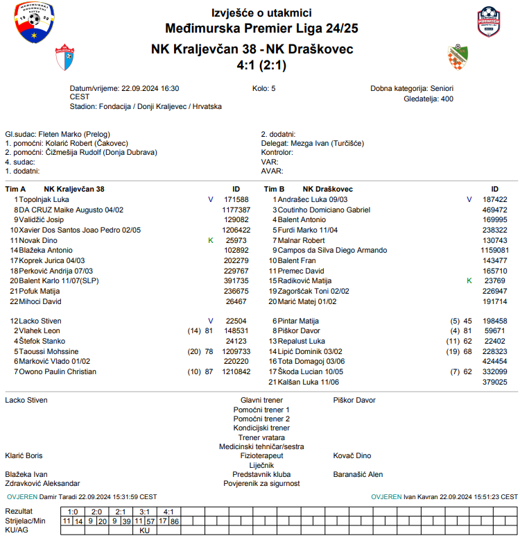 Kraljevčan je dugo čekao novu pobjedu, još od prvog kola i konačno je dočekao. Uvjerljivi su bili protiv Draškovca na svom stadionu Fondacija pred velikim brojem navijača. Dino Novak i Josip Validžić svojim su golovima doveli Kraljevčan u prednost 2:0 već nakon 20 minuta igre. Najbolji strijelac i igrač Draškovca Diego je tu prednost smanjio pred kraj prvog dijela. U nastavku je Dino Novak bio precizan s bijele točke, a Jurica Koprek završio je utakmicu pogotkom u 86. minuti, postavivši konačan rezultat 4:1.