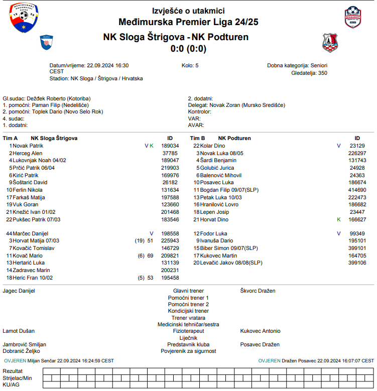 Još jedan „škrti“ remi odigran je ove nedjelje. Utakmica između Sloge Štrigova i Podturena završena je bez pogodaka i bez pobjednika. Nije to pretjerano iznenađujuće jer su obje momčadi imale obaveza preko tjedna u kupu. Također, obje momčadi su izuzetno kvalitetne i taktički uvijek spremne pa ni danas opreza nije nedostajalo.