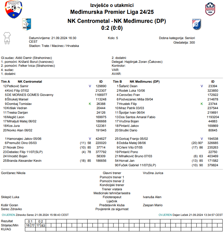 NK Centrometal – NK Međimurec (DP) 0:2