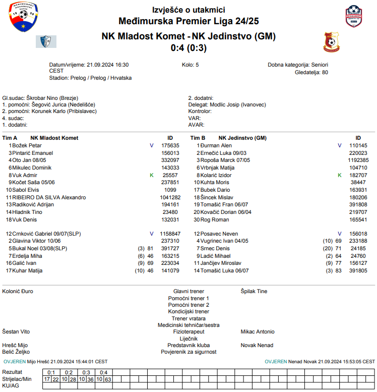 NK Mladost Komet – NK Jedinstvo (GM) 0:4