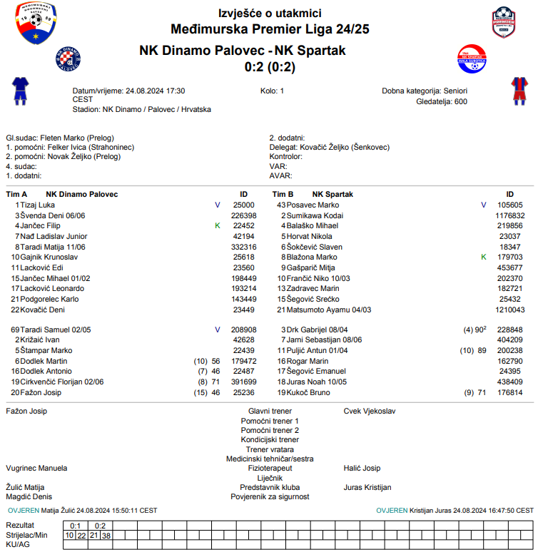 NK Dinamo Palovec – NK Spartak 0:2
