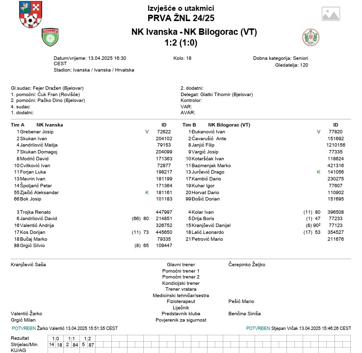 Derbi začelja igrao se u Ivanskoj. Istoimeni domaćin je dočekao ekipu Bilogorca, koja je prije početka utakmice bila dva boda iznad svog današnjeg suparnika, ali i jedno mjesto iznad. Ivanska je povela u 18. minuti preko Petra Špoljarića, a to su vodstvo držali sve do 84. minute kada je Ante Ćavarušić izjednačio rezultat. Gosti tu nisu stali, pa je tako Boris Drlja u 87. zabio za sva tri boda i za veliko slavlje ekipe iz Velikog Trojstva.