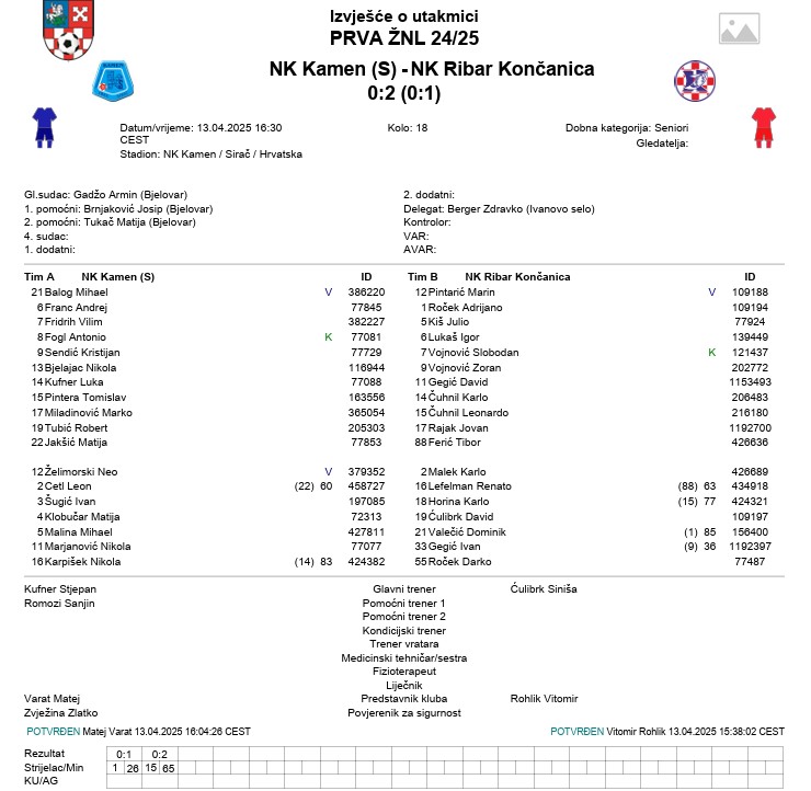 „U utakmici 18. kola naši seniori odnose sva tri boda s teškog gostovanja u Siraču. U vodstvo nas dovodi Adrijano Roček pogotkom u 26. minuti, a točku na i stavlja Leonardo Čuhnil pogotkom u 65. minuti. U utakmici su obje ekipe imale nekoliko izglednih prilika za pogodak, ali na našu sreću, naše su ušle u gol domaćeg golmana. Čestitke treneru i igračima na ovoj izuzetno važnoj pobjedi! Domaćinu se zahvaljujemo na gostoprimstvu prije, za vrijeme i nakon utakmice te im želimo sve najbolje u nastavku prvenstva. Nama u sljedećem kolu dolazi NK Gordowa, a utakmica će se igrati u subotu zbog Uskrsa“ – Ivan Horina, tajnik Ribara.