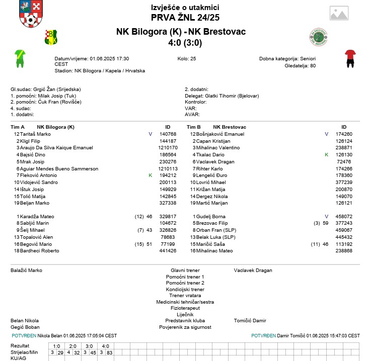 BILOGORA – BRESTOVAC 4:0