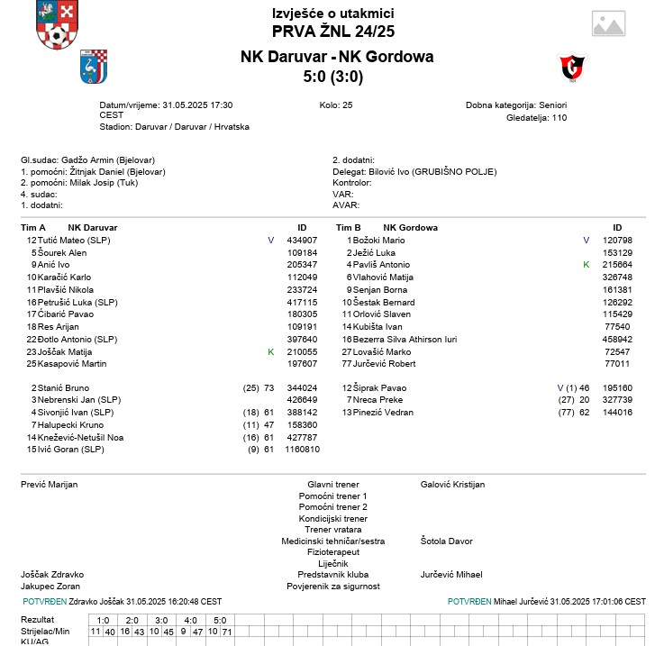 DARUVAR – GORDOWA 5:0