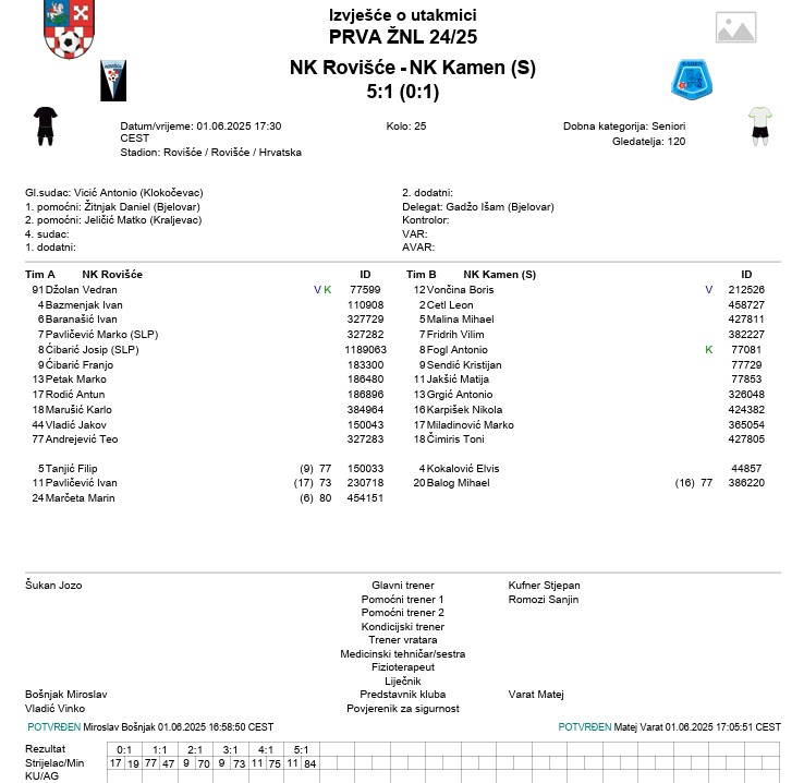 Kakvo drugo poluvrijeme za ekipu Rovišća. Poveli su gosti u 19. preko Marka Miladinovića i ništa nije slutilo na ovakav rezultat. Drugo poluvrijeme otvaraju domaći preko Tea Andrejevića, koji je zabio u 47. minuti. U 70. stiže preokret, a „krivac“ je Franjo Ćibarić. Samo tri minute kasnije isti igrač zabija za 3:1, da bi već dvije minute poslije bilo 4:1, a taj je gol zabio Ivan Pavličević, koji će u 84. minuti zabiti još jedan za konačnih 5:1.