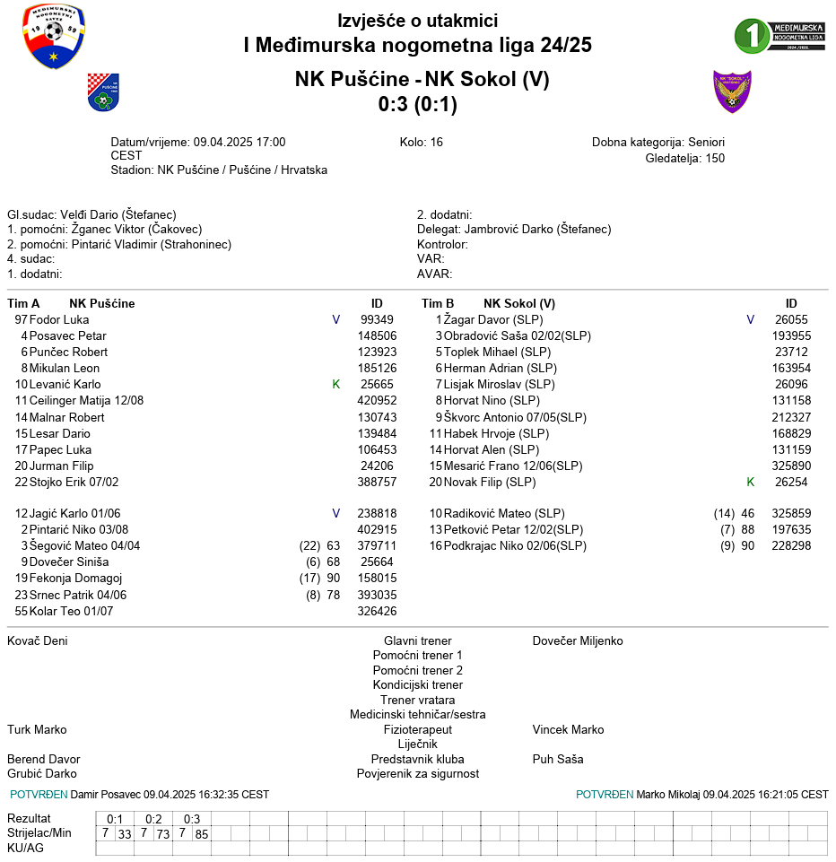 Hladan tuš za Pušćine priredili su gosti iz Vratišinca. Oni su s tri pogotka odnijeli skalp iz Pušćina i ostavili domaćina na trećem mjestu prvenstvene ljestvice. Nakon odličnog izdanja prošlog vikenda kada su s pet pogodaka počastili Bratstvo, Pušćine su ovoga puta ostale bez ispaljenog metka. Glavni dželat Pušćinama bio je Miroslav Lisjak koji je svoju maestralnu partiju krunisao s tri zgoditka. Sokol je nakon ove pobjede napredovao na ljestvici, pa osamnaesto kolo dočekuje na poziciji broj sedam.