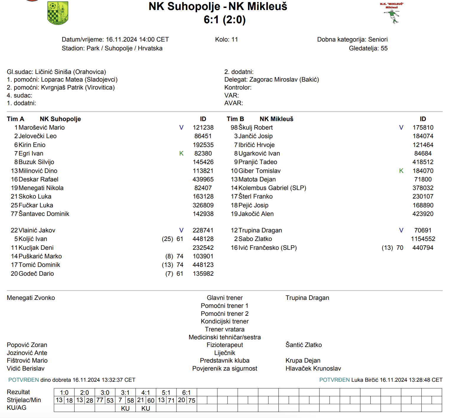 SUHOPOLJE – MIKLEUŠ – 6:1