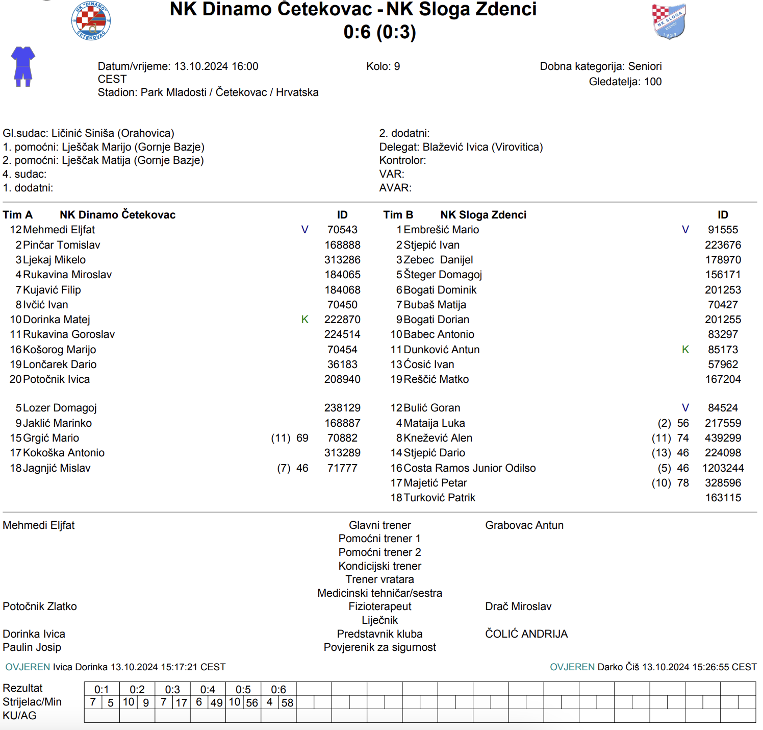 DINAMO(Č) – SLOGA(Z) – 0:6