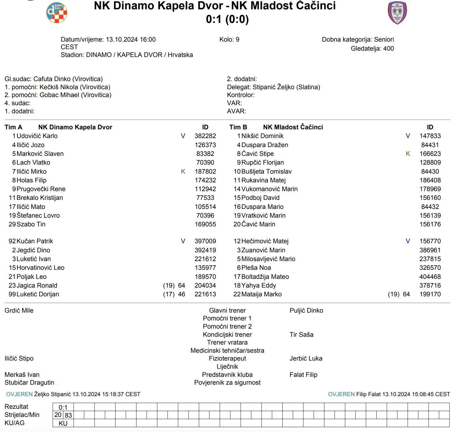 Očekivano čvrsta i muška utakmica. Uspjeli smo zadržati momčad Mladosti daleko od svojih 30 metara, odakle su pokušavali pucati. Nažalost, nismo iskoristili stopostotnu šansu pred kraj prvog poluvremena. U drugom poluvremenu preuzimamo kontrolu nad loptom, ali bez velikih prilika. Pred kraj utakmice lopta nesretno pogađa našeg igrača u ruku, te iz tog jedanaesterca primamo gol. Nakon toga ne ostajemo mirni i pokušavamo iskoristiti igrača više. Okrećemo se radu i pripremi za novu utakmicu. riječi su Mate Iličića, predsjednika Dinama.