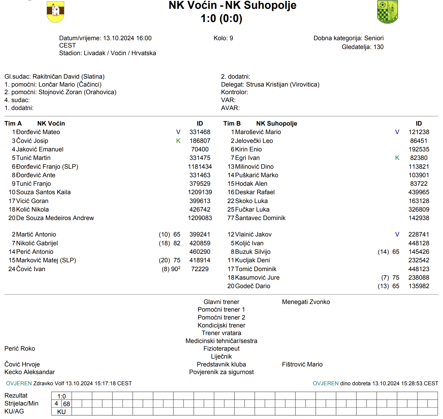 Naravno, svega je bilo, ali najmanje nogometa. Očitali su nam lekciju o tome kako se treba boriti za svoj klub, za što im čestitam. Međutim, sve ostalo oko organizacije, uključujući vređanje mene kao trenera, nisam doživio. Kao osoba nisam dao povoda za to, ali ako je tako, idemo dalje. Prvenstvo je dugo, nemamo vremena za kukanje. Čeka nas nova utakmica. izjavio je Zvonko Menegati, trener Suhopolja.