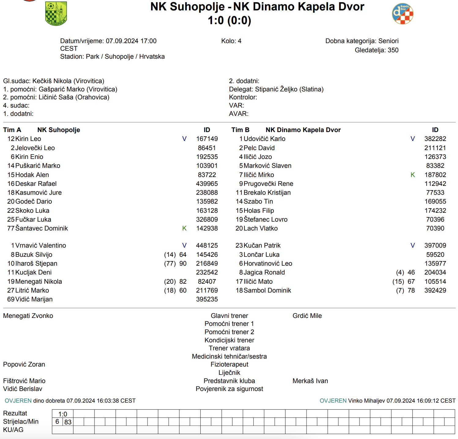 SUHOPOLJE – DINAMO(KD) – 1:0