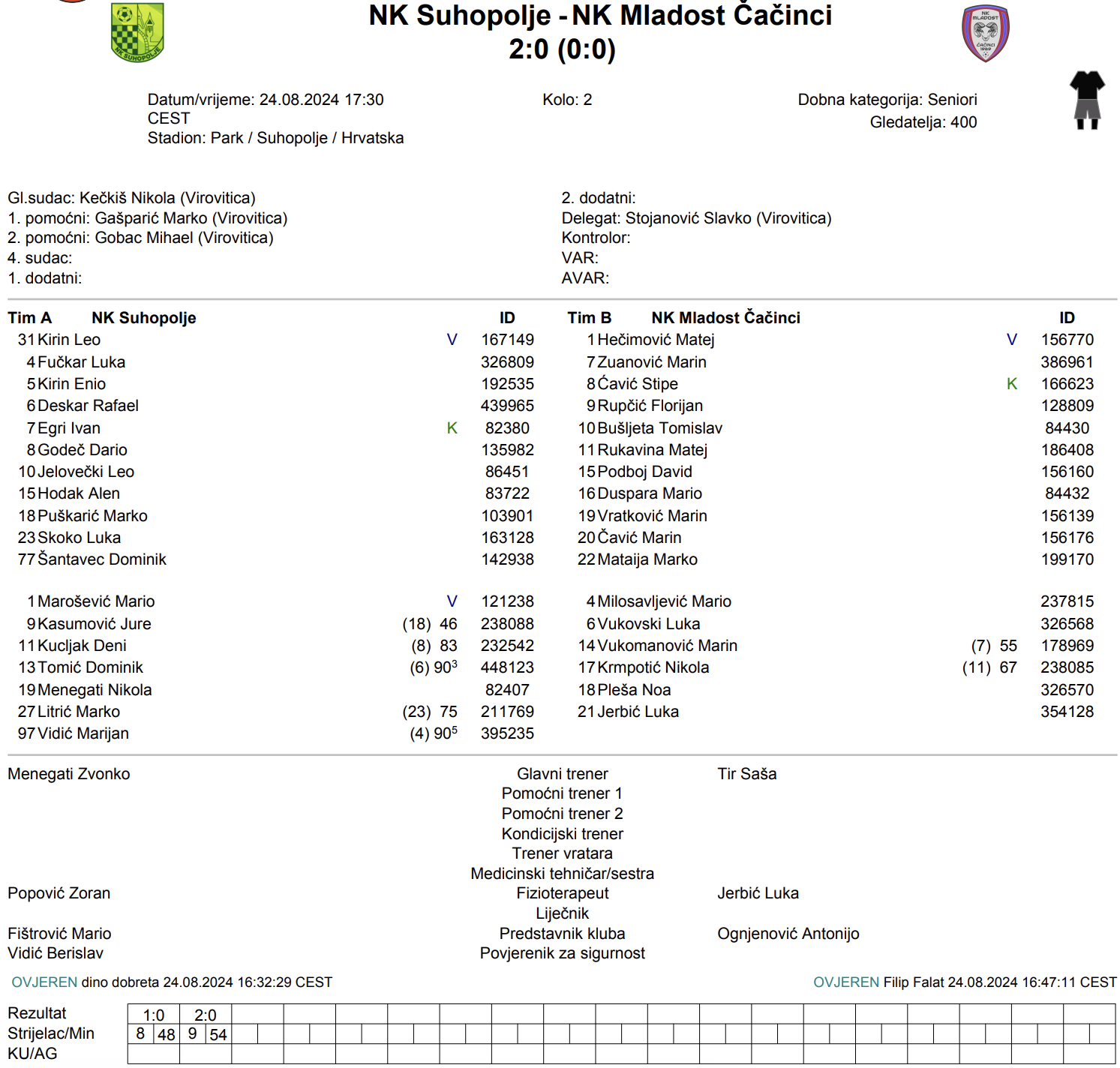 SUHOPOLJE – MLADOST(Č) – 2:0