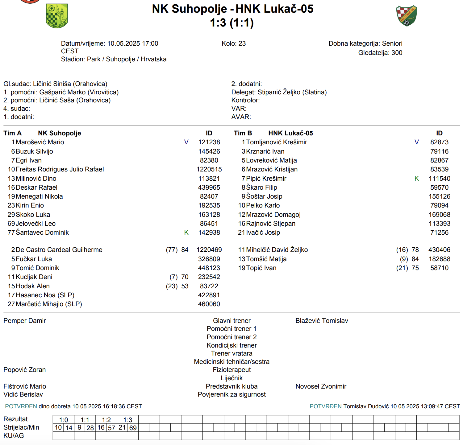 – Još jednom smo pokazali zajedništvo i vjeru jedni u druge, što se na kraju odrazilo i na konačan rezultat. Utakmica je bila čvrsta, s vidljivom željom obje ekipe da daju svoj maksimum i dođu do sva tri boda. Teško mi je istaknuti pojedinca jer je cijela ekipa djelovala kao jedna cjelina – upravo je ta kolektivna igra bila naša najveća snaga. Čestitam i ekipi Suhopolja na korektnoj i borbenoj igri. Mi nastavljamo dalje istim putem, fokusirani na ostvarenje cilja koji smo si zacrtali. – za Sportalo rekao je trener Lukača, Zvonimir Novosel.