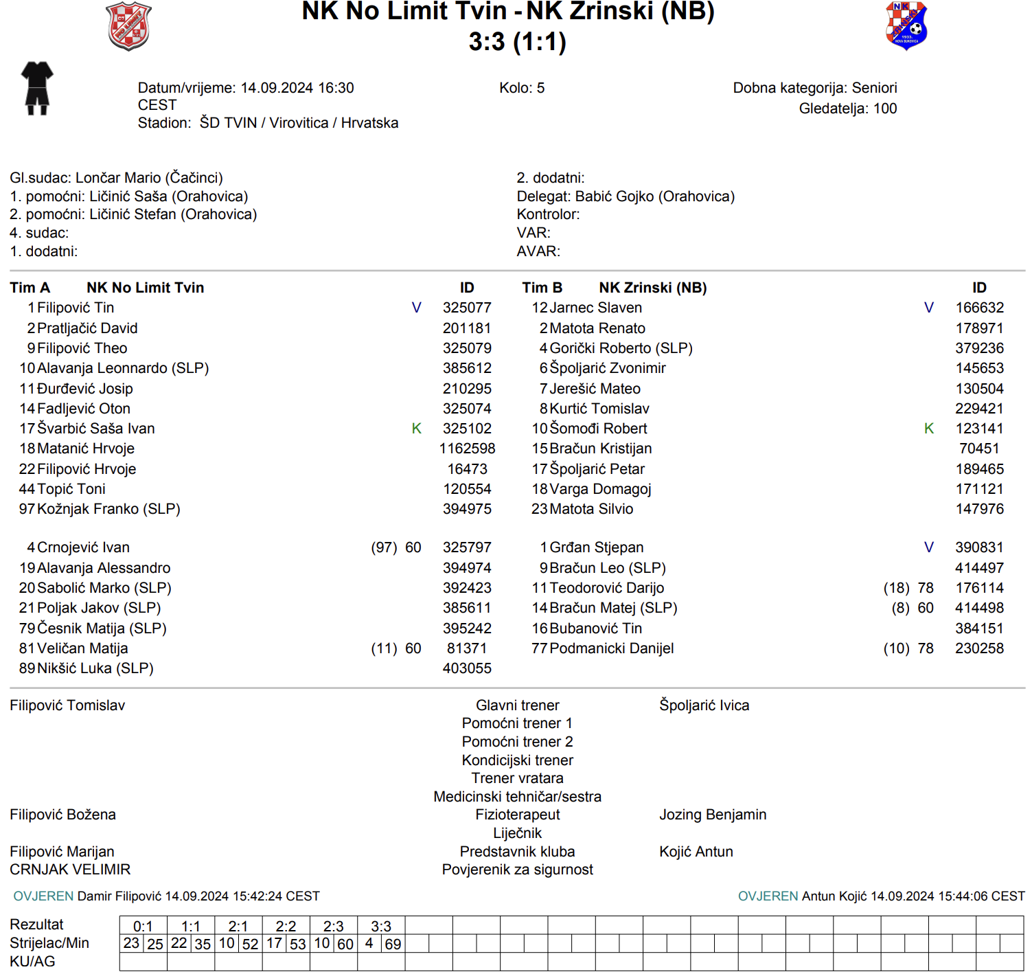 NO LIMIT TVIN – ZRINSKI(NB) – 3:3