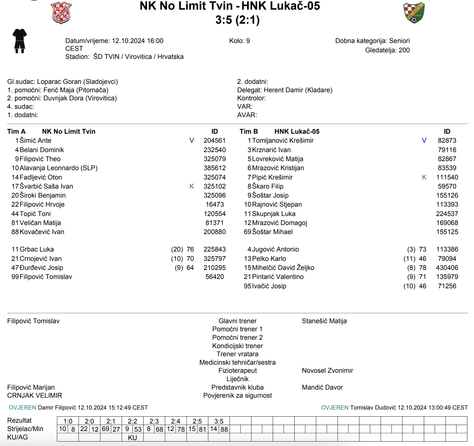 Vrlo zanimljiva utakmica igrala se u Virovitici na ŠD Tvin. Oba poluvremena bila su uzbudljiva za gledatelje. No Limit je u 12. minuti vodio 2:0 pogocima Leonnarda Alavanje i Hrvoja Filipovića. Rezultat je smanjio Mihael Šoštar u 27. minuti. No Limit ostaje s igračem manje u 33. minuti kada je isključen Toni Topić. S rezultatom 2:1 se odlazi na odmor. No Limit nije uspio izdržati s igračem manje u drugom poluvremenu. Prvo Lukač izjednačuje iz kaznenog udarca koji je realizirao Josip Šoštar. Nakon toga, dobra serija Lukača s 3 pogotka odvela ih je na 2:5, a zabili su Filip Škaro u 68., Domagoj Mrazović u 78. i David Željko Mihelčić u 81. Treći pogodak No Limita postigao je Oton Fadljević u 88. minuti. Za izdvojiti u ovoj utakmici je posebno lijep pogodak postigao Hrvoje Filipović; takav pogodak se rijetko viđa na terenima županijskih liga. Pogotke No Limita možete pogledati OVDJE.
