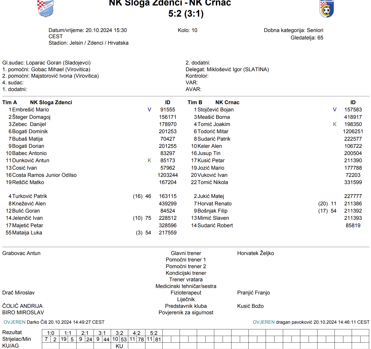 Sloga je u zanimljivoj utakmici slavila uvjerljivo. Matija Bubaš doveo je Slogu u vodstvo u 2. minuti, no stigao je brzi odgovor u 5. minuti kada je Mario Jozić izjednačio. Do kraja poluvremena Sloga je postigla 2 pogotka, a oba je zabio Dorian Bogati u 24. i 44. minuti. U drugom poluvremenu Alen Keler u 53. smanjuje iz kaznenog udarca. Antun Dunković je s 2 pogotka zaključio pobjedu Sloge u 78. i 81. minuti.