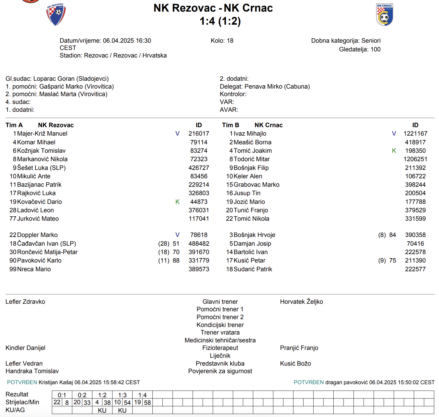 – Već me je sramota stalno pisat i govorit da smo bili bolji, al opet smo bili bolji kod aktivnog rezultata, ušli smo bolje, promašili smo dvije mrtve na 0:0 i dobijamo gol iz ogromne greške našeg golmana. Na 0:1 promašujemo još dvije i primamo gol za 0:2, iz penala smanjimo na 1:2 i tako odemo na odmor, u nastavku se igra va bank, reda se prilika za prilikom, oni svoje koriste, mi svoje promašujemo i na kraju gubimo utakmicu. – dodao je trener Rezovca, Mihael Komar.