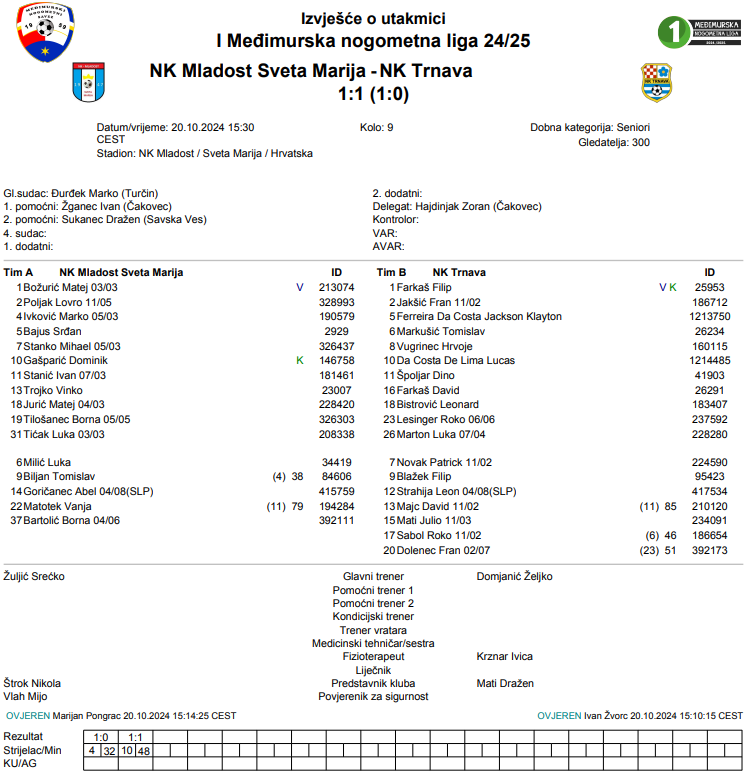NK Mladost Sveta Marija – NK Trnava 1:1