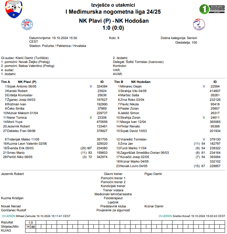 Plavi su na Počurkama došli do druge pobjede ove sezone, a njihova druga žrtva bio je Hodošan. Minimalan rezultat bio je dovoljan za nova tri boda plavaca i nešto sigurniji bijeg od začelja. Jedini strijelac bio je Yuya Morii u samoj završnici utakmice jer je pogodak postigao u 86. minuti utakmice i tako osigurao pobjedu svoje momčadi.