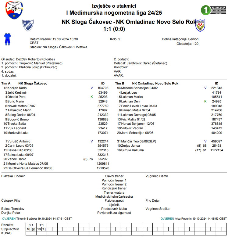 NK Sloga Čakovec – NK Omladinac Novo Selo Rok 1:1