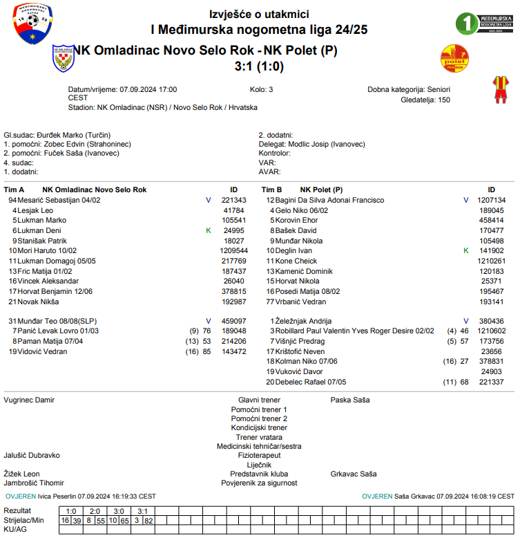 Omladinac je protiv jakog protivnika sačuvao sva tri boda u trećem kolu. Pobijedili su Polet na svom stadionu 3:1. Vincek, Paman i Mori odlučili su novom porazu reći ne i pogocima osigurati da bodovi konačno ostanu u Novom Selu Rok. S druge strane, Paul Robillard ublažio je poraz pogotkom na kraju utakmice.