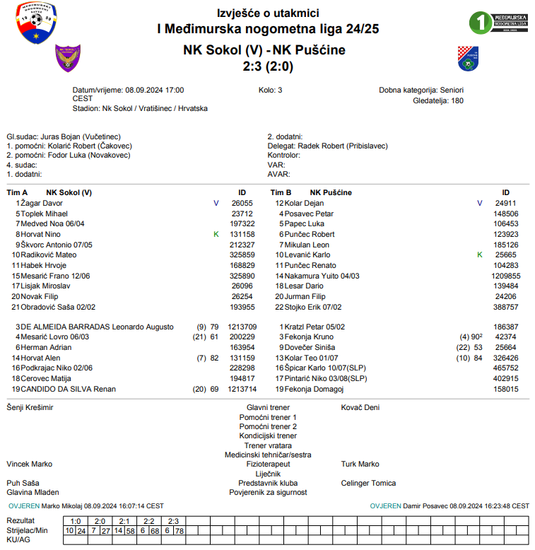 Još jedan preokret rezultata dogodio se u Vratišincu. Ovoga puta su gosti bili uspješniji i slavili na kraju. Tamo je Sokol ugostio Pušćine i izgubio. Otvorena utakmica s dva različita poluvremena u kojoj su obje momčadi imali odlične prilike. U prvom je Sokol bio konkretniji i poveo 2:0 pogocima Radikovića i Medveda. U drugom su nogometaši Pušćina odlučili krenuti po sva tri boda. To su i ostvarili pogocima Nakamure i Punčeca koji su režirali odličan preokret i osigurali treću pobjedu u isto toliko utakmica za Pušćine.