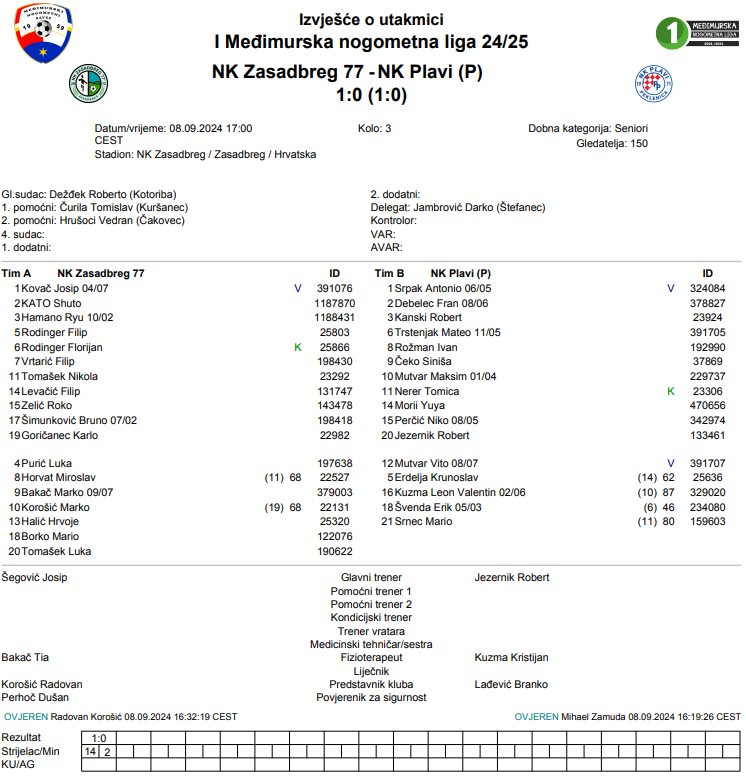 Zasadbreg je ubilježio novu pobjedu pred svojim navijačima. Brzi pogodak Levačića na otvaranju utakmice bio je dovoljan za pobjedu i nova tri boda. Gosti nisu pronašli odgovor pa ovo kolo ostaju jedina momčad koja nije postigla pogodak.