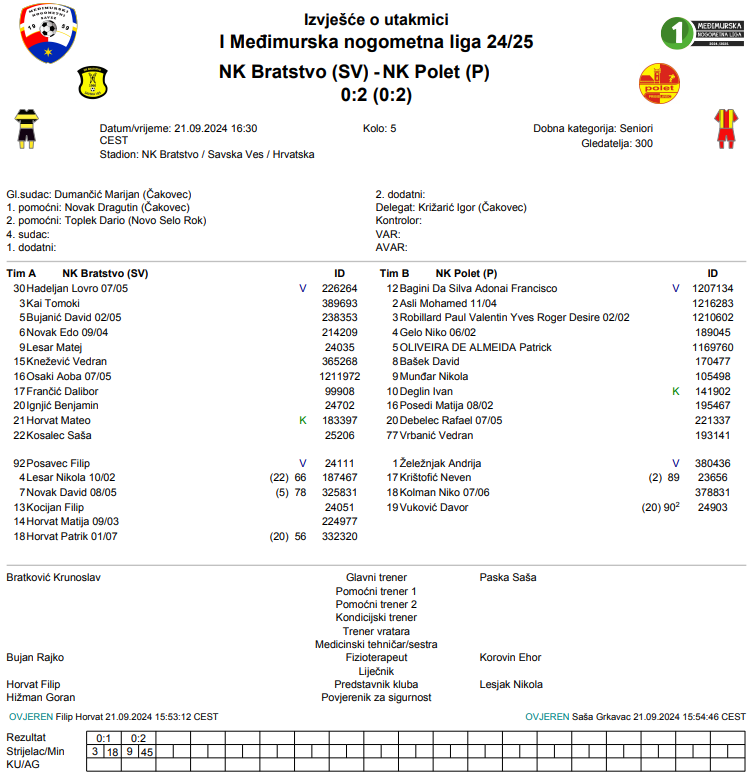 NK Bratstvo (SV) – NK Polet (P) 0:2