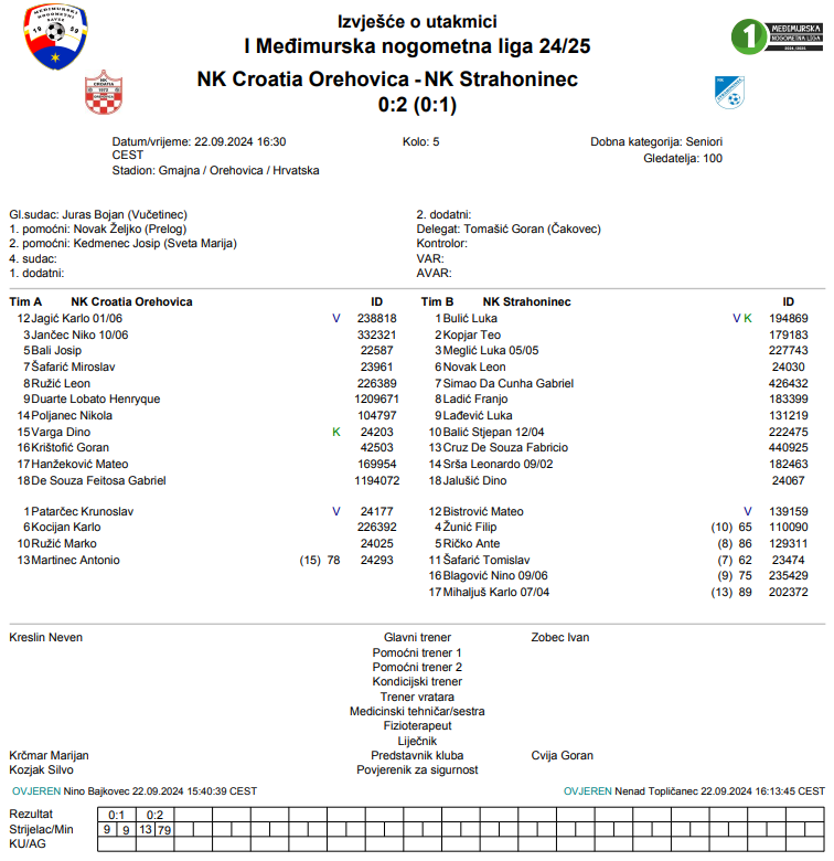 NK Croatia Orehovica – NK Strahoninec 0:2