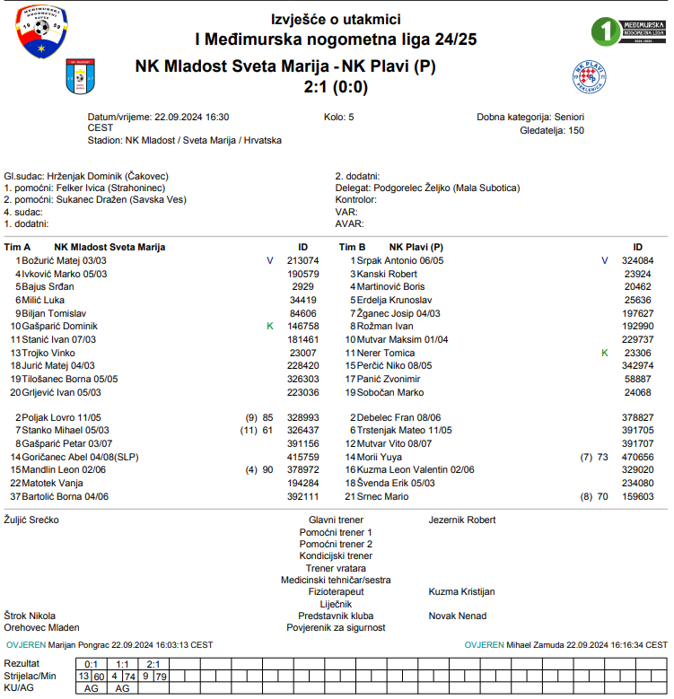 NK Mladost Sveta Marija – NK Plavi (P) 2:1