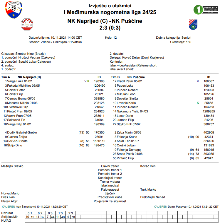 Pušćine su se u Cirkovljanu provukle sa sva tri boda u vrlo važnoj utakmici za njih. Gosti su pokazali dominaciju u prvom djelu kada su preko Levanića, Nakamure i Mikulana stvorili uvjerljivu prednost od 0:3. Ipak, u nastavku su domaći nogometaši preuzeli inicijativu i krenuli po bodove. Na samom startu drugog poluvremena Fran Pintač je smanjio zaostatak na dva pogotka razlike, a u 78. minuti je Gabrijel-Sretko Dodik zabio za 2:3. Imali su domaćini još dobre prilike, a od boda iz utakmice udaljila ih je vratnica. Pušćine su ovom pobjedom osigurale još jedan tjedan na vrhu ljestvice pa mirnije dočekuju gostovanje u Pribislavcu koje će odlučiti prvaka.