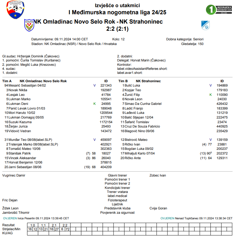 NK Omladinac Novo Selo Rok – NK Strahoninec 2:2