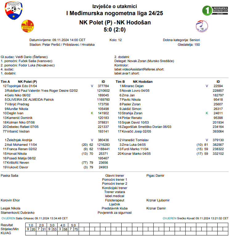 Polet ništa nije prepustio slučaju pa je nakon prošlotjednog poraza ispravio pogrešku i u mrežu Hodošana strpao pet komada. Nikola Munđar ponovno je bio na visini zadatka jer je postigao dva pogotka, a isti učinak imao je i Predrag Višnjić. Jedan je dodao i Paul Robillard pa je Polet uvjerljivom pobjedom ostao u trci za naslov jesenskog prvaka.