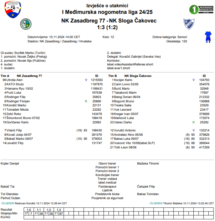 NK Zasadbreg 77 – NK Sloga Čakovec 1:3