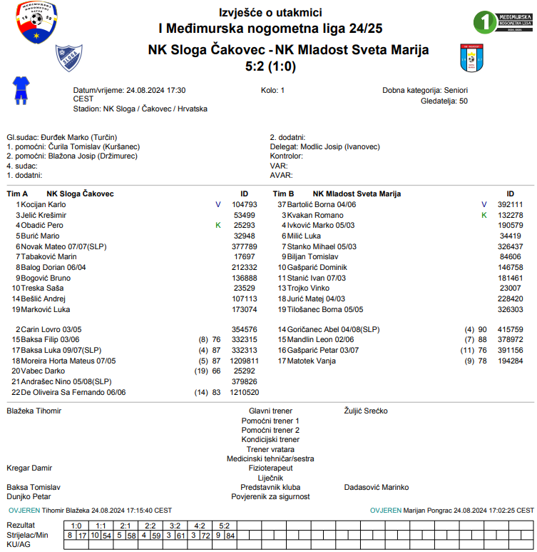 Najviše pogodaka zabijeno je na utakmici u Čakovcu gdje je istoimena momčad ugostila Mladost iz Svete Marije. Aktualni prvak 2. Međimurske NL krenuo je u novo takmičenje raspucano i upisao prvu pobjedu. Samo jedan od sedam pogodaka postignut je u prvom poluvremenu i on je djelo Doriana Baloga. Gledatelji su u drugom dijelu mogli svjedočiti pravoj rapsodiji. Najzanimljiviji period utakmice odigran je od 54. do 61. minute kada su postignuta čak 4 pogotka, od toga po dva sa obje strane. Tada su se u strijelce za domaće upisali Burić i Jelić, a za goste su bili precizni Gašparić i Ivković. Sredinom drugog dijela Jelić je ponovno zabio za 4:2, a konačnih 5:2 postavio je Bogović golom u 84. minuti utakmice.