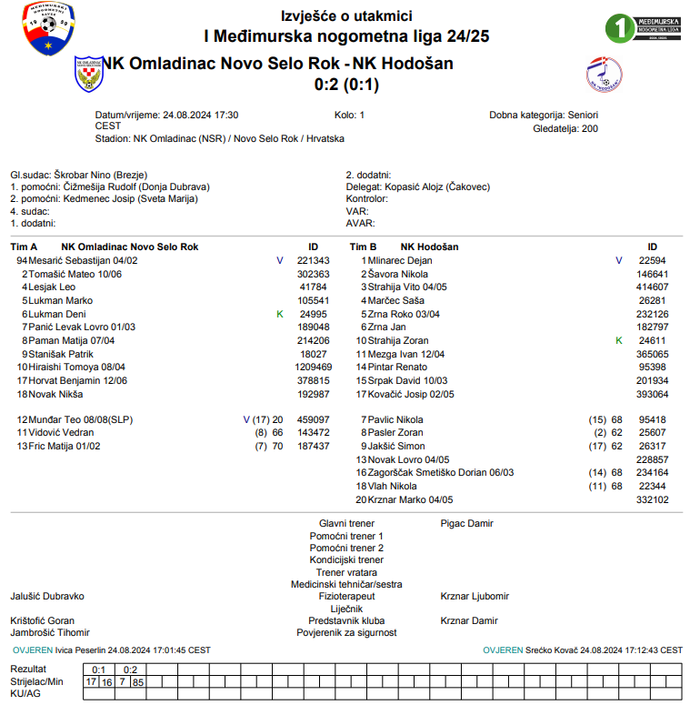 NK Omladinac Novo Selo Rok – NK Hodošan 0:2