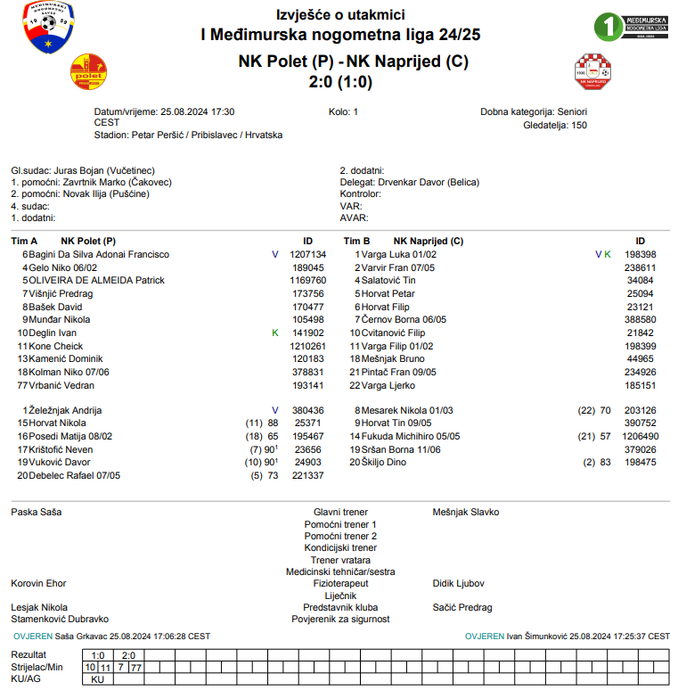 NK Polet (P) – NK Naprijed (C) 2:0