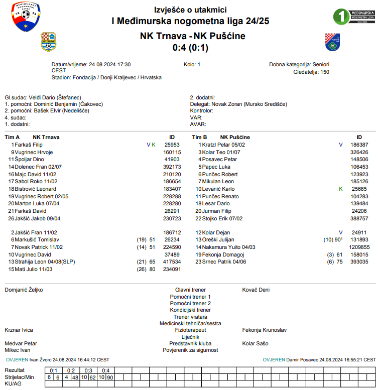 Nova sezona u višem rangu počela je odlično za momčad Pušćine. Svoj put u 1. Međimurskoj NL započeli su uvjerljivom pobjedom nad Trnavom. Punčec je goste doveo u rano vodstvo u 6. minuti utakmice. Brz pogodak zabili su i na početku drugog dijela kada je Posavec matirao domaćeg vratara. Isti igrač je kasnije isključen sredinom drugog dijela, ali to nije omelo gostujuće nogometaše koji su preko Levanića zabili još dva pogotka za konačnih 0:4.
