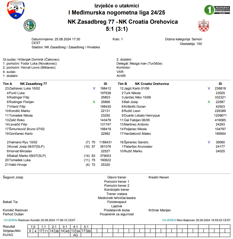 NK Zasadbreg 77 – NK Croatia Orehovica 5:1