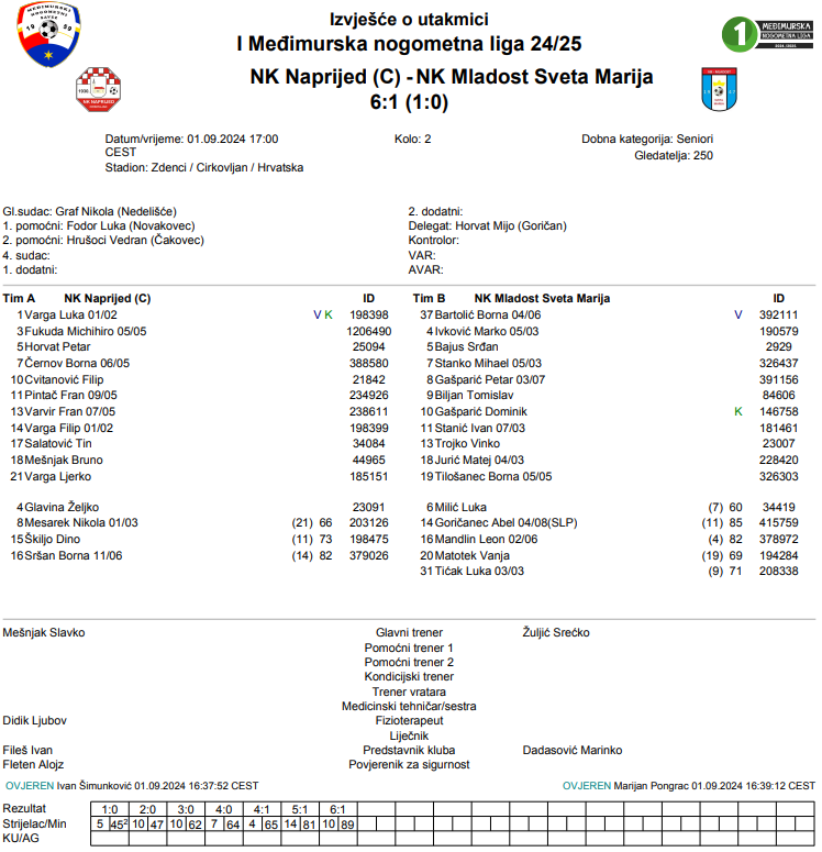 NK Naprijed (C) – NK Mladost Sveta Marija 6:1
