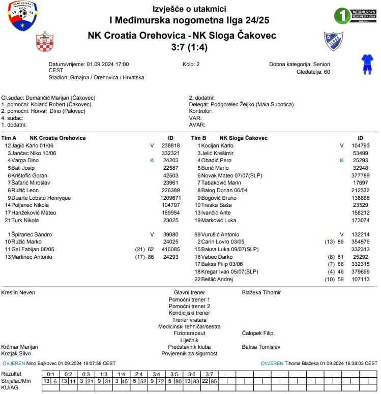 NK Croatia Orehovica – NK Sloga Čakovec 3:7